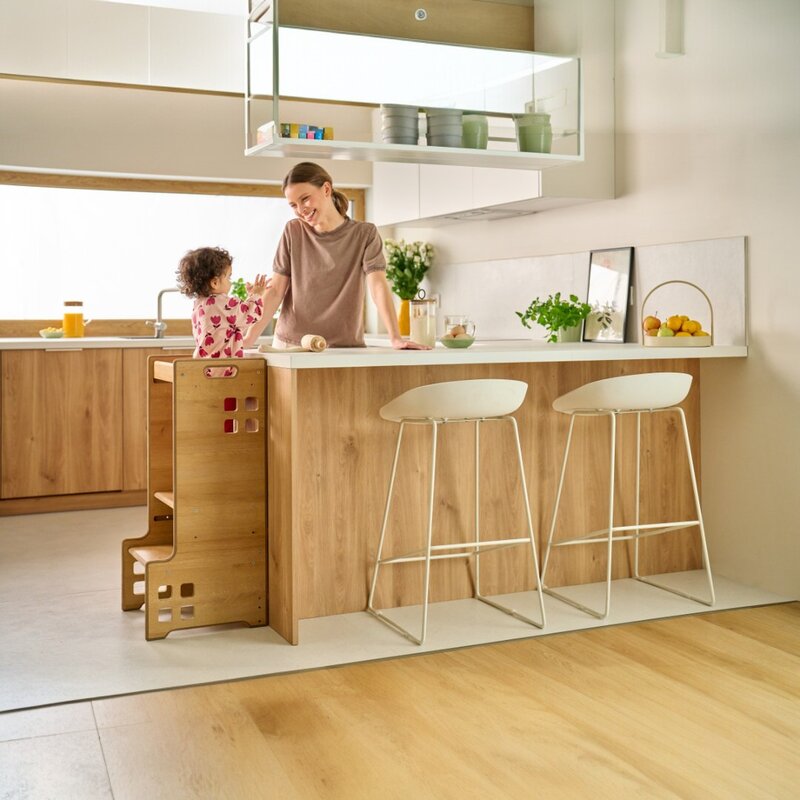 Un ajutor de bucatarie 2 in 1 – sigur, practic si versatil, cu un design atent gandit, culori echilibrate si un aspect estetic, se potriveste cu usurinta in diverse tipuri de interioare si stiluri de decor. Este alegerea ideala daca doriti sa petreceti timp de calitate impreuna cu cel mic.
